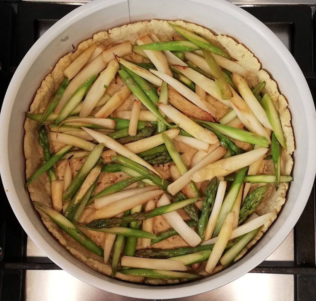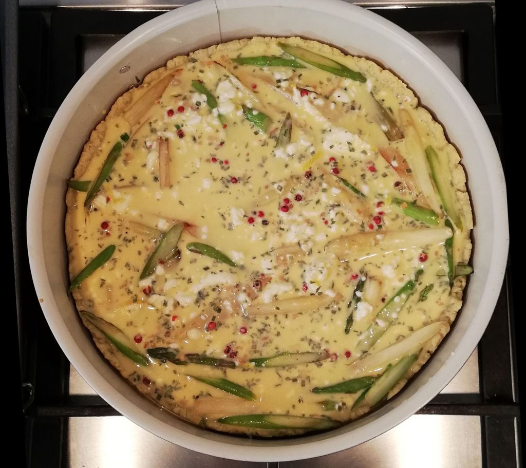 Spring is in full blown now and its the perfect time to make something which is fitting to the fresh smell which is filling the air here in Beijing. My two organic suppliers E&L Healthy and iorganic send white and green asparagus to me last week and I had to make something else than the ordinary German dish. You know, when you cook the asparagus and cover it with a creamy sauce hollandaise? But this time I tried much more variations, much healthier since I’m with Weight Watchers now. Today I’ll show you a tart recipe which is low in calories.